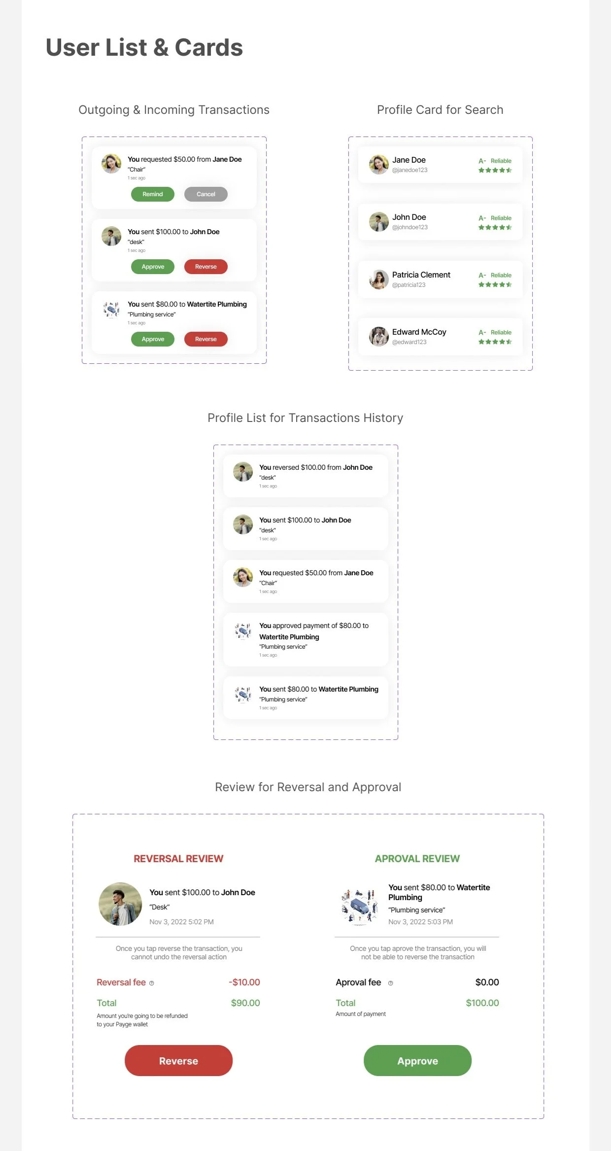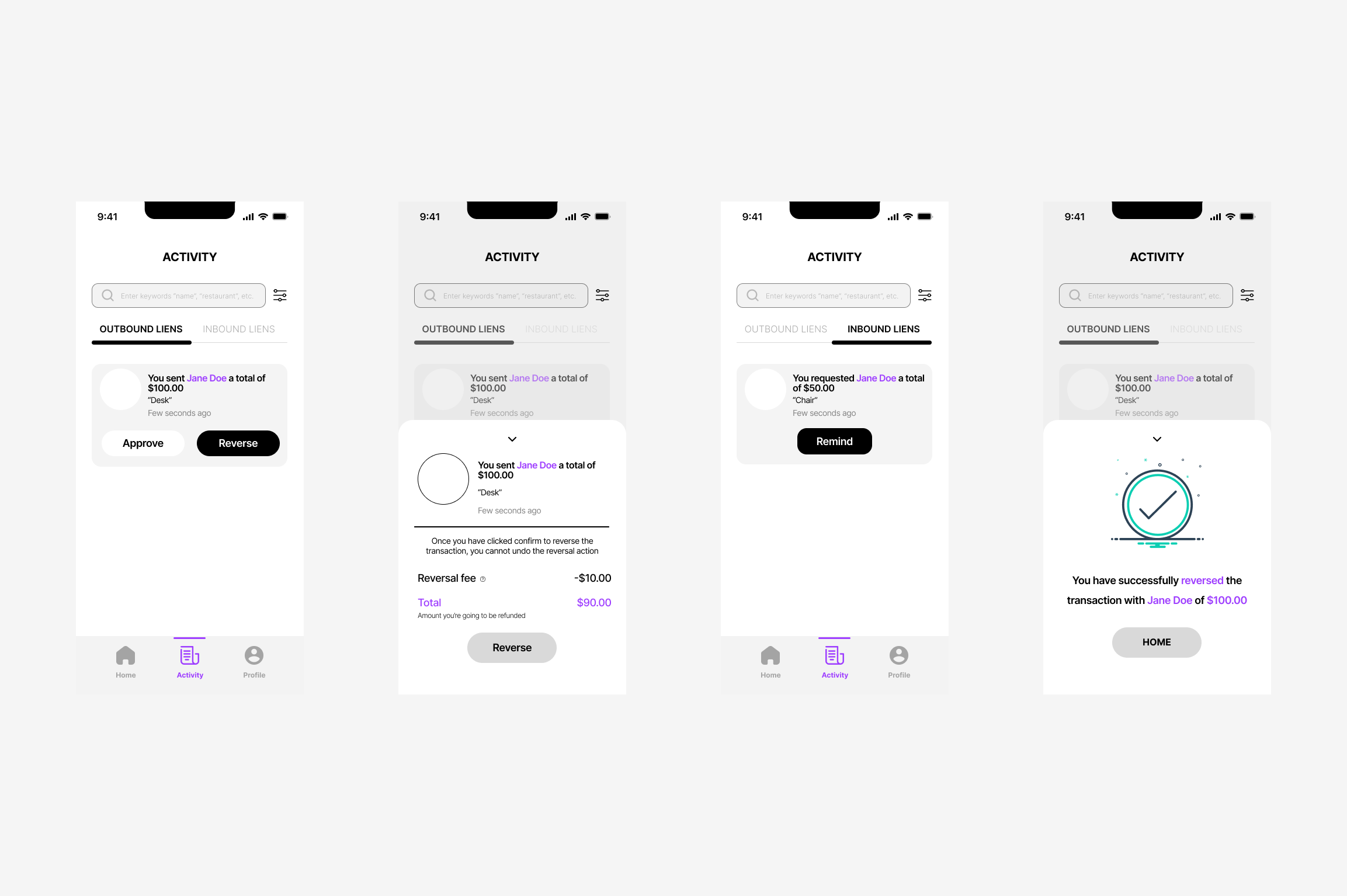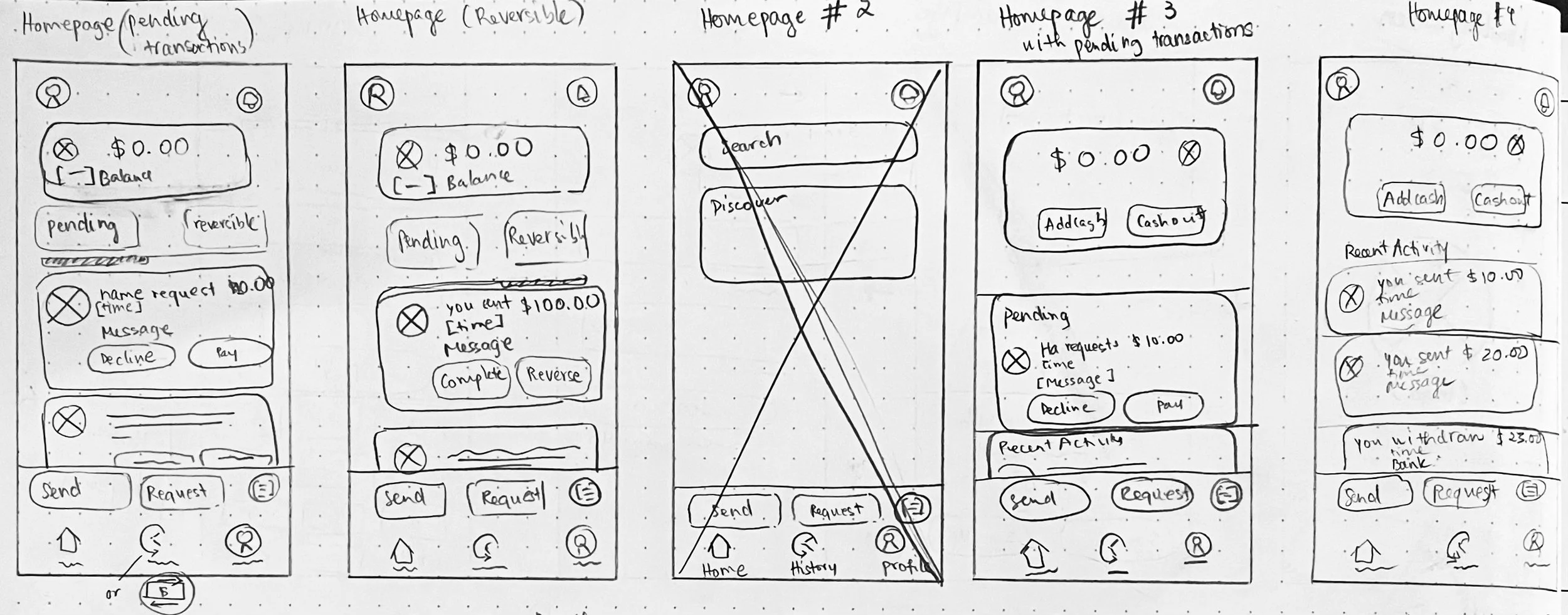 Low-fidelity wireframes were used to test and validate our app’s core features, including sending, requesting, and reversing transactions.