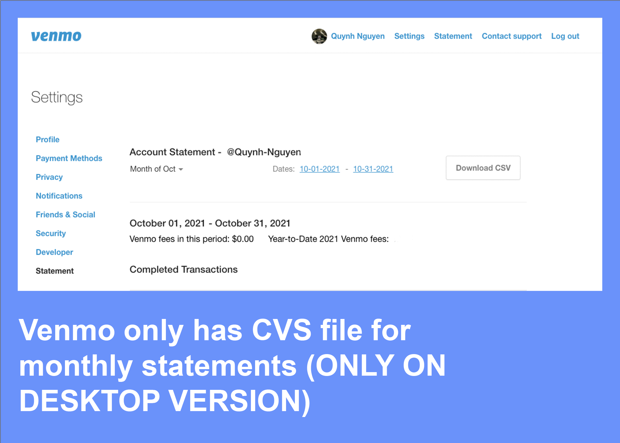 1 of them knows that Venmo sends transactions monthly statements through email and desktop versions.